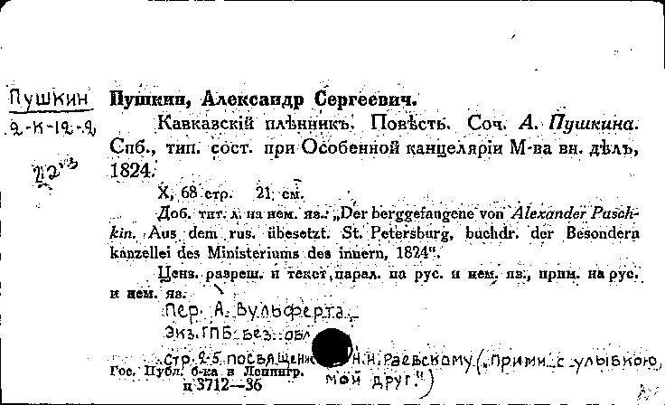 Но мало того: «Кавказский пленник» породил и еще один «кейс». В 1824 году издатель немецкого журнала «St.-Petersb. Zeitschrift» Е. П. Ольдекоп выпустил немецкий перевод «Кавказского пленника», что, конечно, лестно для автора, только милейший Евстафий Иванович для тех своих читателей, кто, как он сам, способны разобрать по-русски, не обинуясь, приложил к переводу полный русский текст поэмы. Чем, конечно, очень поднял известность и тираж своего журнала, но лишил Пушкина возможности сделать втрое издание, за которое ему, по его собственным уверениям, уже предлагали 3000. Сергей Львович от лица сына подал жалобу в Цензурный комитет – но тот обнаружил, что сделать ничего невозможно, потому что в своде законов Российской империи просто не предусмотрено наказания за нарушение авторских прав. К тому же Ольдекоп был почтенным человеком, сам служил почтовым цензором, а Пушкин – опальным шалопаем. В 1827 году, когда Пушкин переживал краткий «роман» с новым царем, он напомнил Бенкендорфу об этом казусе, засевшем занозой («Ольдекоп, мать его в рифму!» - писал он Вяземскому). И получил вежливый, но неутешительный ответ:
