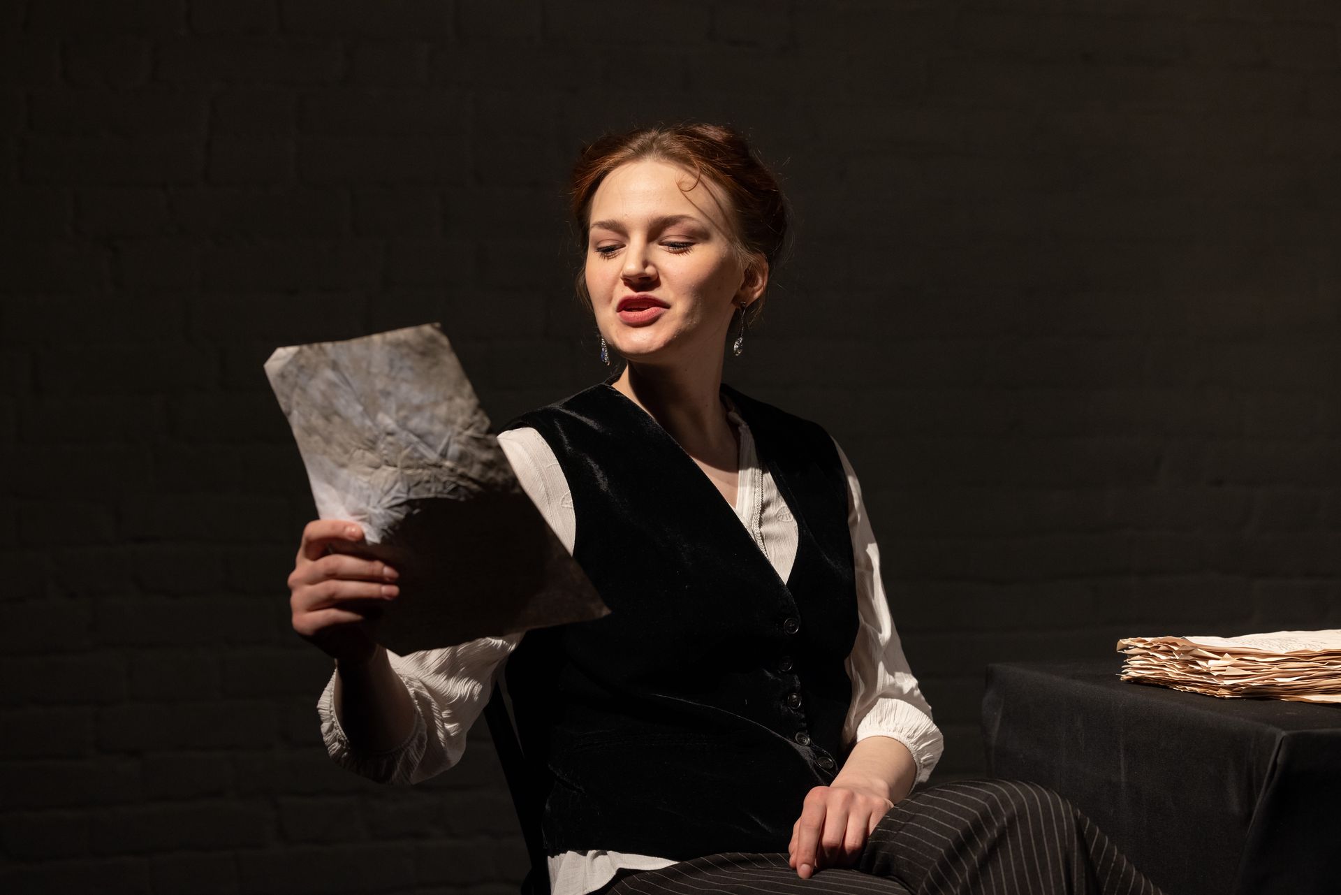 Что же зрители увидели на самом деле? Из сценографии — длинный стол, заваленный письмами, что само по себе уже давно штамп. Белую стену, на которой то и дело появлялись пояснения того, что читают сейчас двое на сцене. Да вот и все. Скупы были и актеры на средства выразительности. То начинали играть в Чехова и Мизинову, то просто читали с выражением, а то и проговаривали отстраненно дурно написанные биографические справки.