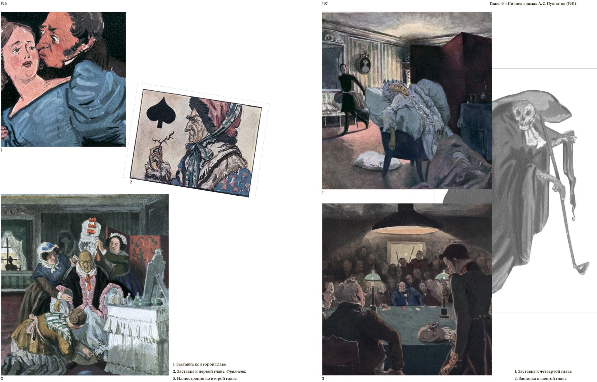 В своем дневнике он пишет: «Меня лично “Пиковая дама” буквально свела с ума, превратила на время в какого-то визионера, пробудила во мне дремавшее угадывание прошлого. <…> Музыка “Пиковой дамы” получила для меня силу какого-то заклятия, при помощи которого я мог проникнуть в издавна меня манивший мир теней»4 Так что судьба явно готовила художника к третьей попытке, которая заслуженно считается грандиозным событием в области книжной графики. «Пиковая дама» стала впечатляющим опытом и одной из признанных «визитных карточек» Бенуа в работе с классическими литературными произведениями.