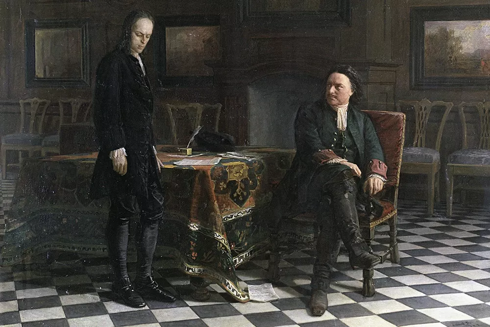 Помните знаменитую картину Николая Ге "Петр допрашивает царевича Алексея в Петергофе"? Петр сидит в кресле: гордая осанка, аристократический поворот головы, левая рука на подлокотнике, правая устало возлежит на колене. Но главное - взгляд, полный ненависти и презрения. Царевич перед ним: тощий, анемичный, едва ли не женственный. Стоит, опустив голову, как уличенный в тайном пороке. Петр на полотне Ге, словно директор советской школы, а царевич - горе-ученик из серии вечных мерзавцев. И главное - все сразу понятно: кто прав, кто виноват, кто радеет за Отечество, а кто за личные интересишки, кто строит, а кто только и думает, как бы разрушить и напакостить. Картина, написанная во второй половине 19 века, представляет собой абсолютный и буквальный апофеоз советской историографии. В ней есть все, кроме одного и, на мой взгляд, главного - изображения отца и сына. Вот Илья Ефимович Репин десять лет ранее был куда более решителен и прозорлив: он написал царя Ивана, убившего не царевича и не врага Отечества, а собственного сына. Но то Репин...