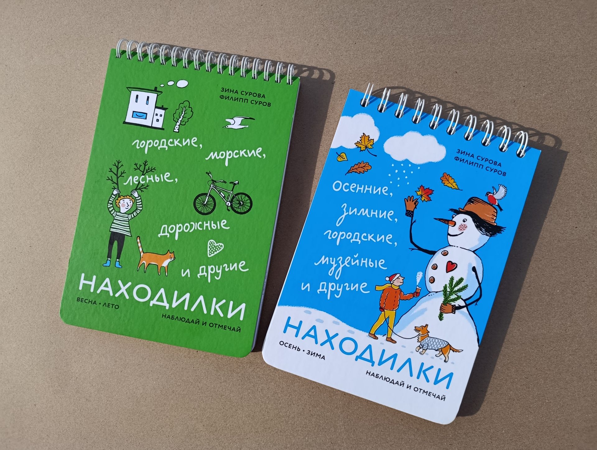 Тема Карелии попросила именно коллаж. У Ладожской природы есть суровая мощная цельность, которая требовала именно плоскостные коллажные иллюстрации. Я работаю в соавторстве с мужем, коллегой и дизайнером Филиппом Суровым. И вначале работы над книгой мы попробовали несколько разных техник. Я хотела рисовать в компе или на планшете. Это сильно бы упростило подготовку книги к печати. Для меня цифровая иллюстрация — привычное дело. Например, наши «Находилки», книжка-блокнот, которые заменили гаджеты десяткам тысяч детей, нарисованы именно в компе, потому что в них были нужны простые познавательные иллюстрации...
