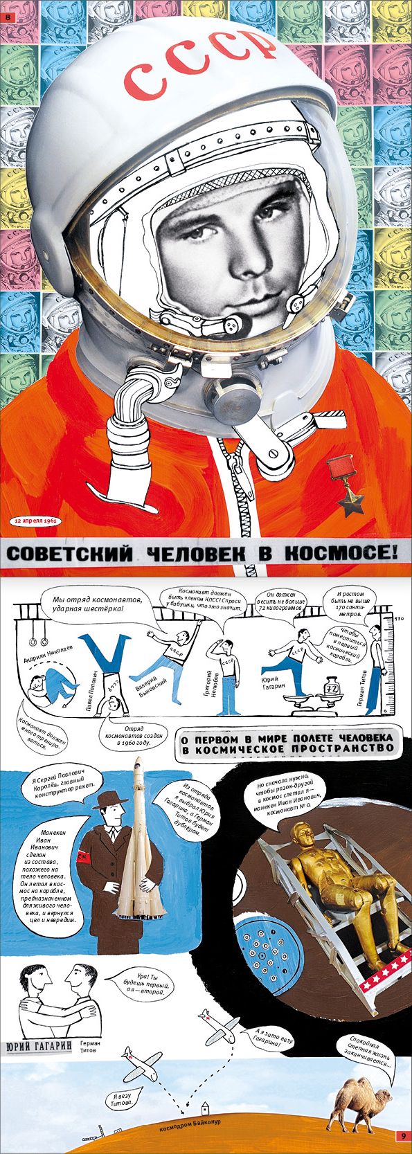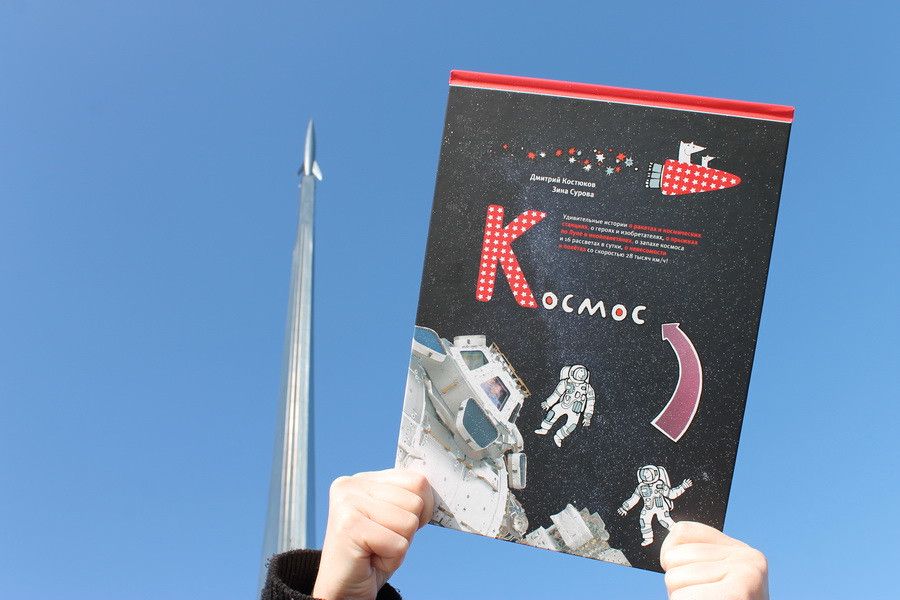 Зина Сурова: Конкретно это издательство – «Архипелаг», и там меня знают давно. В «Архипелаге» вышли моя игровая книжка «Загадки» и наша книжка о космонавтике, тоже с коллажными иллюстрациями... В «Космосе» встречаются развороты, до которых «Синему перу» далеко: на одной картинке может быть более семидесяти приклеенных элементов. Этого требовала космическая тема.