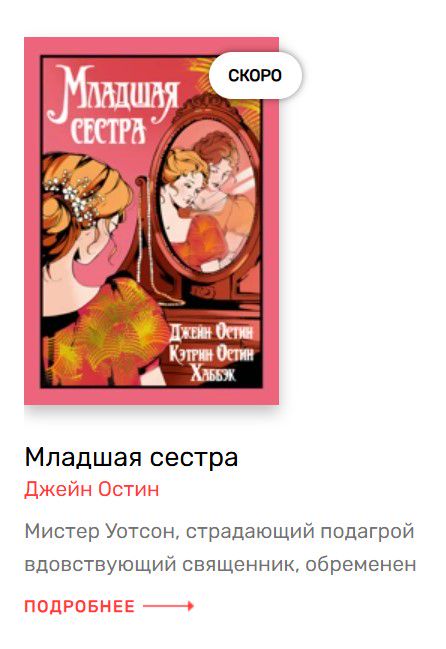 Неким фанфиком, конечно, «Младшая сестра» и является, ведь это в XIX в. не было такого слова, а мы с вами к нему уже привыкли, таких историй много. Конечно, «Младшая сестра» имеет к самой Джейн Остен отношение такое же, как какое-нибудь «Убийство в Пемберли», где от Остен только, собственно, имена и остались. Но кто будет покупать книгу когда-то, кстати, популярной, но ныне забытой Кэтрин Энн Хаббак? Правильно, никто. А если поставить первым имя Джейн Остен (а на сайте издательства в промо вообще только её одно имя и указано), а уже вторым приписать Кэтрин Остин Хаббак – уже вроде и любопытно, что там такое новое расскажет нам мисс Остен?