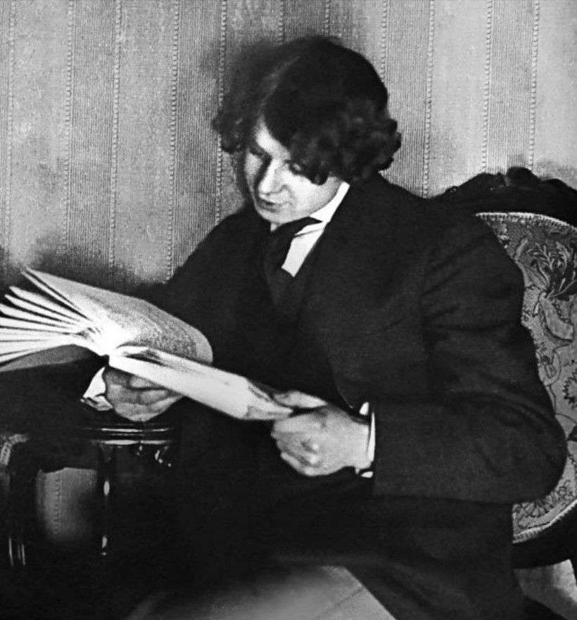 Когда мы ехали в трамвае, Есенин, сидящий рядом со мной, посмотрел на меня, словно завороженный, и робко назвал меня на "ты". Живет как простой крестьянин недалеко от Рязани... Взглянув на гипсовую голову Ницше, Есенин воскликнул: "Ницше!" Видимо, Клюев очень любит Есенина: склонив его голову к себе на плечо, он ласково поглаживал его по волосам.