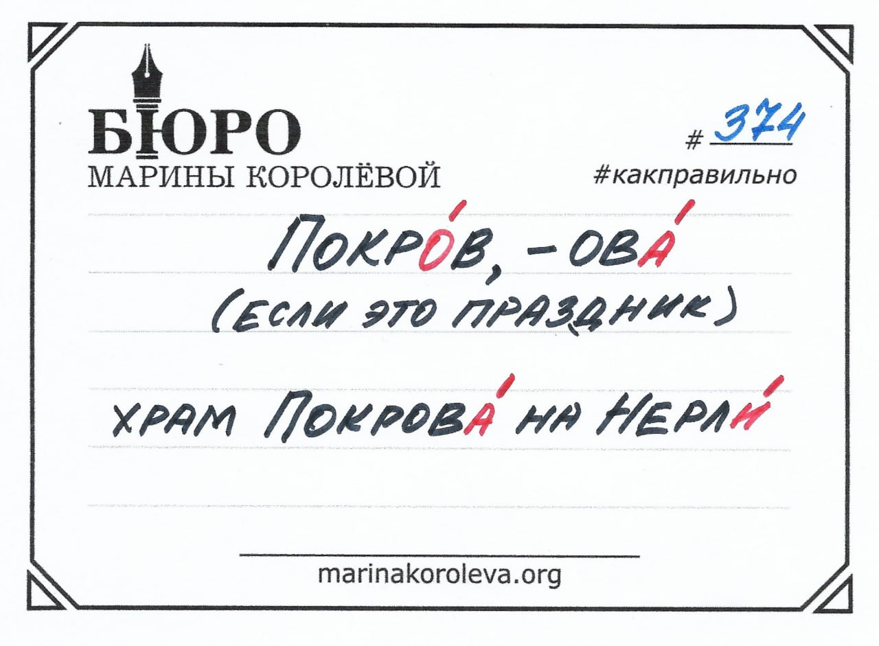 Карточка о сегодняшнем церковном празднике: Покро́в Пресвятой Богородицы – так называется. Все три слова с прописных букв.