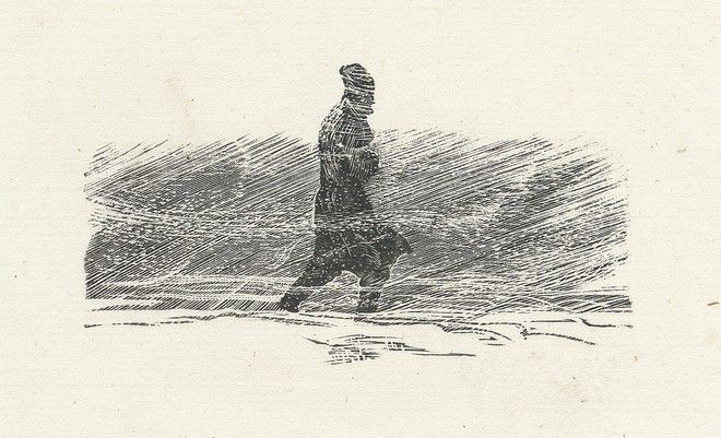 Стоит у меня перед глазами концовка к главе «Вожатый»: сквозь буран идет путник, подгоняемый в спину снежным вихрем. Развеваются полы кафтана. Завывает стихия, грозя погубить. Но нет в этой фигуре страха и отчаяния.