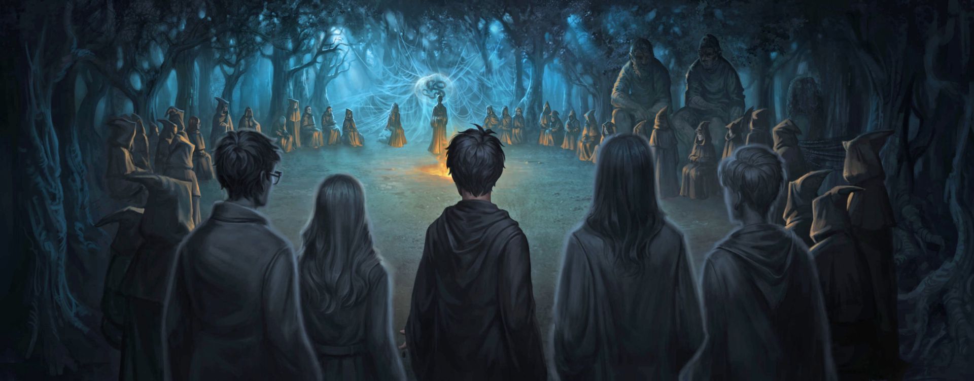 Теперь уже Гарри идет в лес, чтобы умереть – а затем воскреснуть, то есть переродиться. Помогают ему «воскресшие» близкие: родители и их лучшие друзья. Путь становления Гарри – естественно, путь христологический, но вообще-то говоря и воскрешение Христа тоже есть переосмысленный обряд инициации через обрядовую смерть.