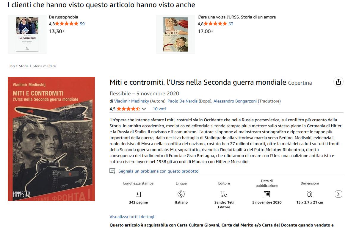 Можно ли в сегодняшней Италии прочитать книгу на русском или посмотреть фильм о России? Можно - благодаря таким людям, как политолог и издатель Сандро Тети. Его попечением книга "Miti e contromiti. l'Urss nella Seconda guerra mondiale" вышла в Италии ровно пять лет назад - 5 ноября 2020 года.