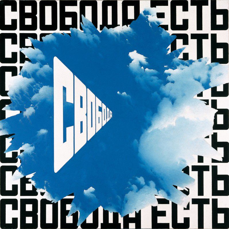 Эрик Булатов считается одним из основоположников соц-арта, начав с 70-х годов сочетать в своих полотнах визуальное и текстовое, инкорпорируя в полотна слова, лозунги и целые тексты. Самая известная его работа - "Слава КПСС", выполненная как раз в этой технике - была продана в 2008 году за 2,1 миллиона долларов.
