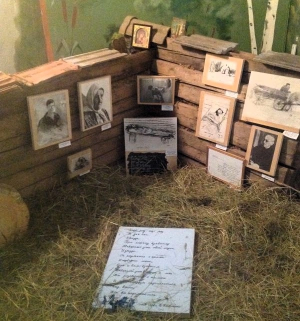 В любовно собранной здесь экспозиции есть и такие раритеты - книжечка, изданная в начале 1930-х от имени "Общества друзей Хлебникова" футуристом Алексеем Крученых (тираж - 95 штук). Здесь же первоначальная полуистлевшая доска с могилы поэта - имя было вырезано ножом.