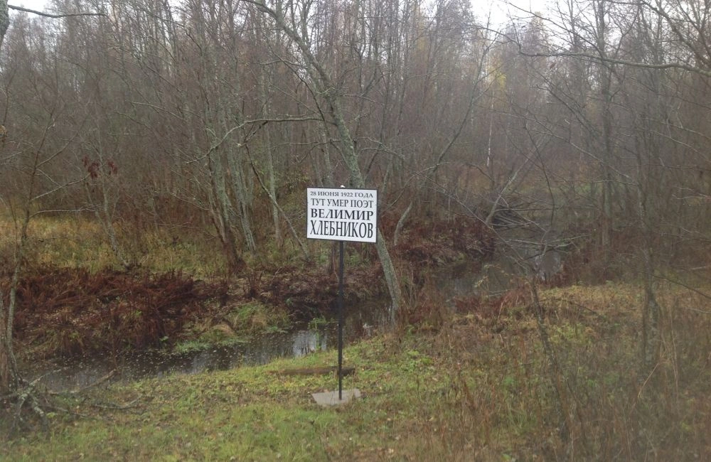 По берегу, сквозь заросли, еще проглядывают мшистые булыжники из фундамента школы, в которой провел последний месяц жизни великий поэт-будетлянин Велимир Хлебников. На бревенчатой стене этой школы когда-то процарапал художник Петр Митурич: "Здесь жил с 16 мая и умер Первый Председатель Земного Шара Велимир Хлебников. 9 ч. утра. 28 июня 1922 г.".