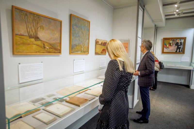 Документы и фотографии на выставках РГАЛИ всегда сопровождаются изобразительным рядом на стенах – рисунками, живописью, плакатами, и это выглядит неким комментарием, фоном для артефактов. Сейчас кураторам удалось придать экспонатам эмоций, добавить фактам красок. Кубофутуристические эксперименты художника-эмигранта Евгения Рубина: уличные сценки в духе Бурлюка и Малевича – яркие контрастные цвета, лозунги поперек холста, угловатые дома... Хулиганская эпоха, ревущие двадцатые, по которым Есенин прокладывал свой непростой путь.
