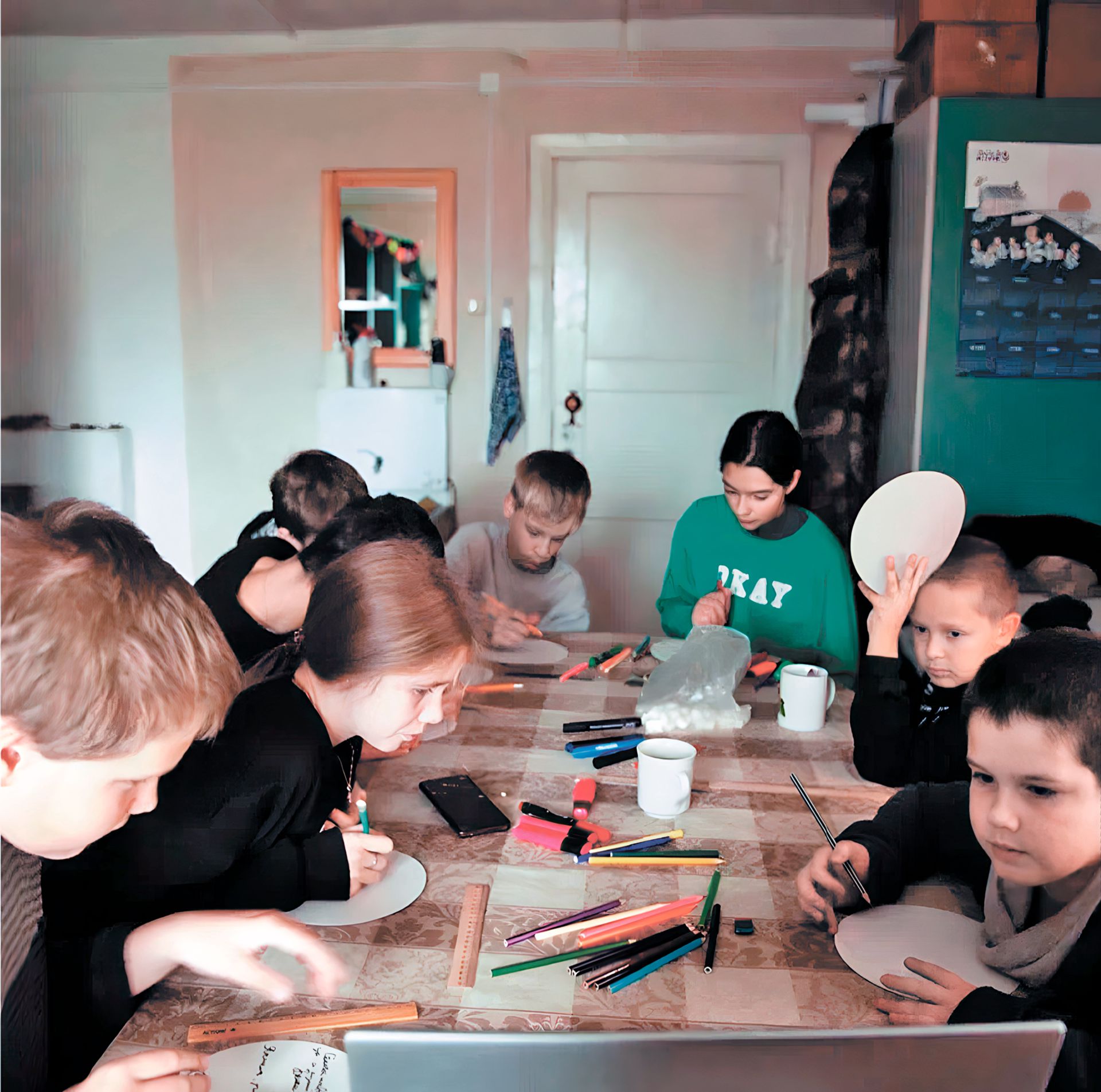 С ребятами-школьниками сдруживаемся понемножку. На втором уроке у нас было практическое занятие — разбирались, какие продукты можно поймать, собрать, добыть, вырастить на территории деревни. Разбирались, записывали и рисовали. Правда, семиклассник Тимофей попытался под шумок строить в телефоне виртуальный гараж вместо выполнения задания, но был быстро отловлен на этом уклонении от учебного процесса и возвращен в реальность.