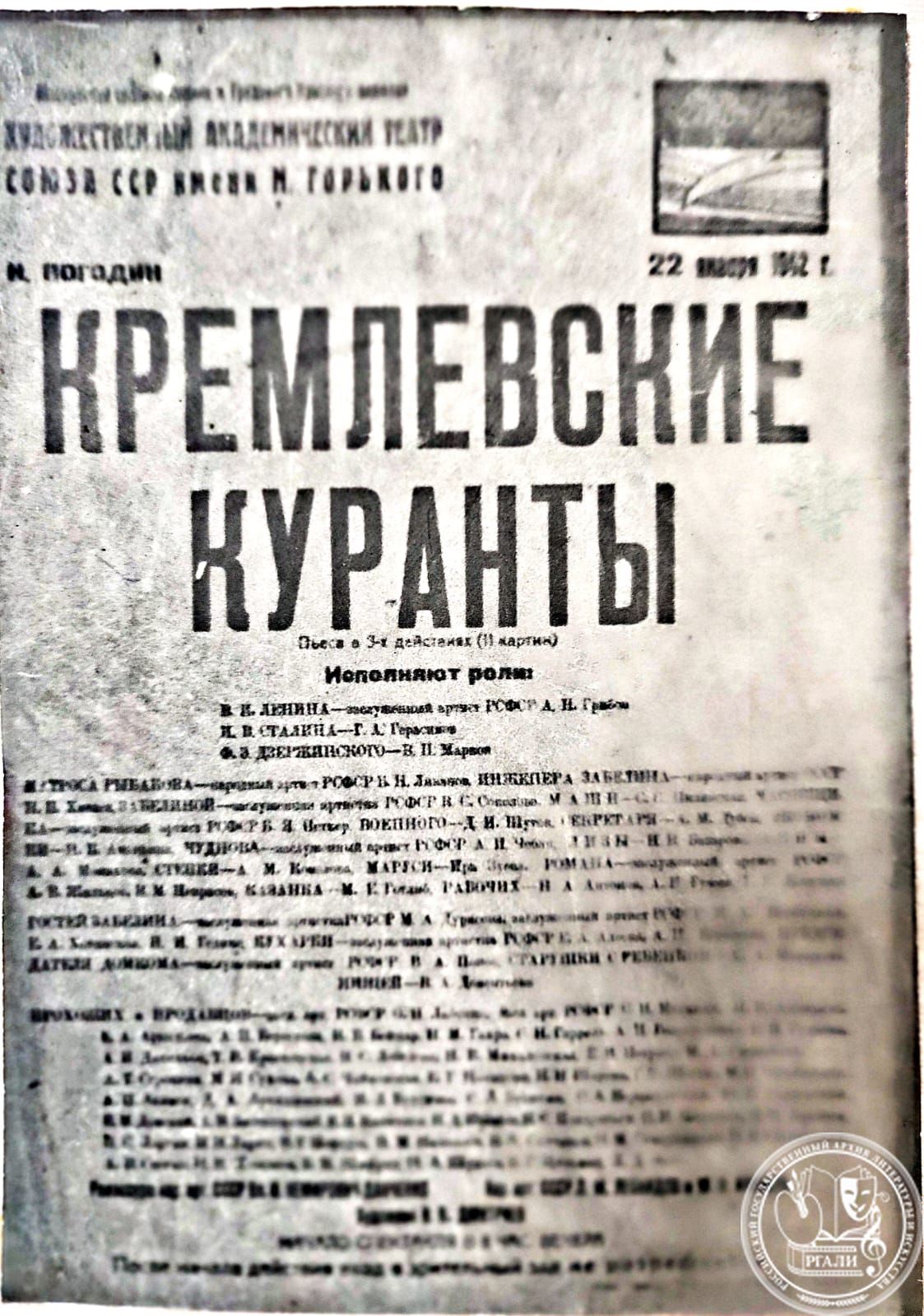 Пьеса ставилась Московским художественным театром (постановщик М.Н. Кедров, роль Ленина играл Б.А. Смирнов). Ещё шли репетиции, а на Н.Ф. Погодина уже обрушилась критика – слишком сложно будет для рядового зрителя, даже название непонятно! «…Приходили и молча уходили представители Министерства культуры СССР и РСФСР. В зрительном зале постоянно находились старые большевики. Вспоминали. Высчитывали по дням… С осуждением смотрели финальные эпизоды после смерти Ленина. Слышались реплики: “Метерлинковщина какая-то”, “А как же социализм!”» (Ф. 2582. Оп. 2).