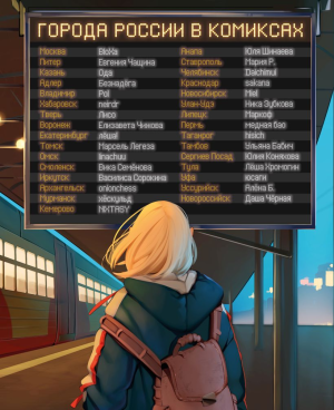 31 известный российский город, увиденный глазами и отрисованный руками (и планшетами) 31 современного российского художника комикса, частично укрывшихся под заковыристыми, как принято в их среде, «артистическими именами». Они такие же разные, как и города, и столь же разнятся избранные ими повествовательные стратегии. Кто-то делает иронично зарисовку, кто-то умудряется вместить в отведённую к каждому из них четыре полосы, то есть два разворота, целую историю с завязкой и развязкой, а кто-то ограничивается красивыми видами. В общем, книга эта бесконечно разнообразна, как описываемый ею предмет, то есть наша страна. И в этом случае нет упрёка в эклектичности: вполне можно счесть за концепт.
