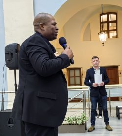 Другой "новый гость" на ярмарке - Сибуси Со, заместитель директора департамента спорта и искусств ЮАР, прибывший в Москву в составе большой делегации специально для участия в ярмарке, со стендом ЮАР, на котором будет представлена, в частности, детская литература этой далекой страны. "Россия и Южная Африка - хорошие друзья. Мы привезли предложения, загляните на наш стенд!" - заявил он.
