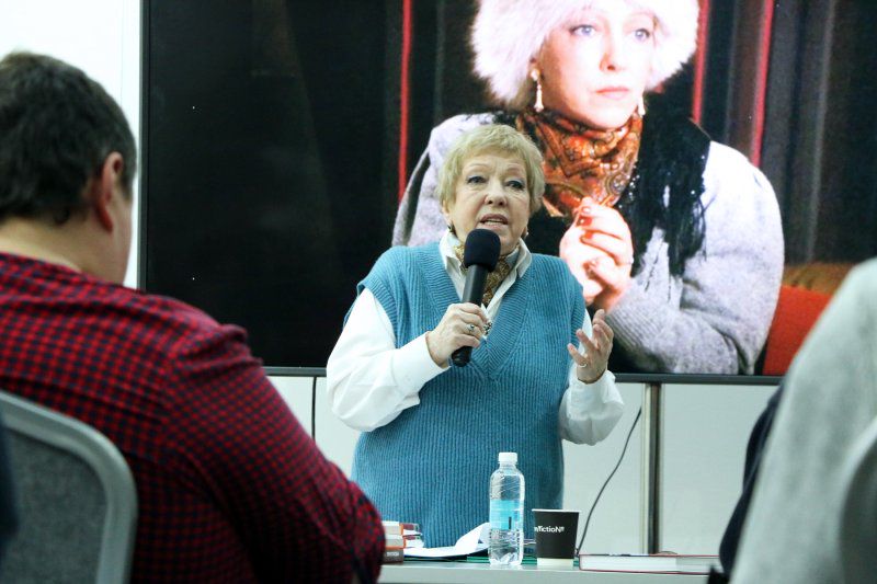 Встреча с актрисой Ольгой Волковой прошла на Международной ярмарке интеллектуальной литературы non/fiсtio№27 в Гостином дворе. Артистка поделилась с гостями воспоминаниями о своем детстве и юности, рассказала о съемках в фильмах, которые принесли ей известность, показала отрывки из этих картин и презентовала недавно изданную автобиографию.