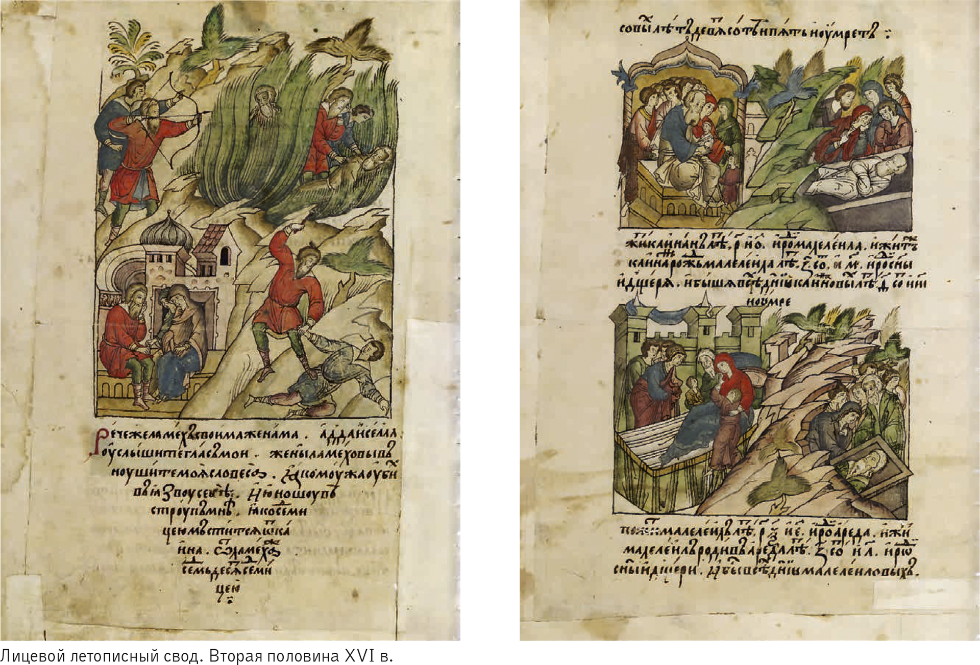 Больше повезло другой подобной книге — Лицевому летописному своду. Он был составлен во второй половине XVI века (предположительно в конце 1570‑х— 1580‑е годы, хотя подготовка материалов могла начаться раньше) для детей Ивана Грозного. К сожалению, свод не был закончен, не применялся по назначению и чудом уцелел во время Смуты. Позднее, в XVII веке, отдельные листы всё же использовали для обучения царевичей.
