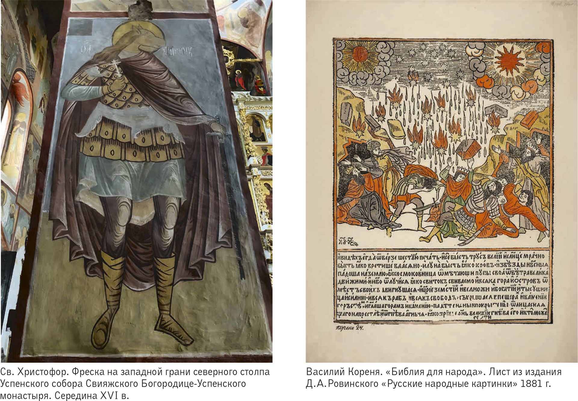 С конца XIII века в Европе были известны т.н. «Библии бедных» с пересказом событий через последовательные изображения и небольшие текстовые вставки (об этом шла речь в разделе про протокомиксы; см. ч. 1, п. 2.3). Предпринимались попытки выпустить подобное издание и на Руси — в 1692–1696 годах художник и гравёр Василий Кореня создал «Библию для народа», однако она была признана еретической, и почти весь тираж был уничтожен. Единственный сохранившийся экземпляр сейчас находится в Российской национальной библиотеке в Санкт-Петербурге.