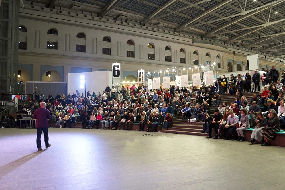 Зрителей на встрече было так много, что часть из них сидела прямо на ступеньках амфитеатра. Были и те, кто слушал артиста стоя. Он сам, кстати, за весь час тоже ни разу не присел.