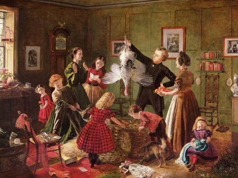 Типичная праздничная выпечка, рождественский кекс — представитель обширного семейства английских фруктовых кексов (fruitcakes), плотный кекс с большим количеством сухофруктов. В ночь с 5 на 6 января — отмечают ближайший к Рождеству праздник — Богоявление, Двенадцатую ночь Рождества. Она подарила название не только одной из пьес Шекспира, но и выпечке, которую традиционно подавали на Богоявление. Twelfth cake — пирог Двенадцатой ночи — прямой аналог пирога волхвов во Франции и Испании. Во времена Диккенса двенадцатый — и последний — день Рождества был кульминацией праздника. В доме писателя собирались друзья, чтобы выпить пунша и съесть по кусочку праздничного кекса. Кексы в этот день обладали внушительными размерами и причудливо украшались марципаном и сахарной глазурью. На иллюстрации к «Рождественской песне» Дух Рождества опирается левой ногой на типичный образчик этой выпечки. Рецепт приготовления непрост — предлагаем вам выбрать на свой вкус — от Эмили Дикинсон и Татьяны Толстой до рецептов шеф-поваров и кулинарных блоггеров, он потребует от вас немалых усилий, но оно того будет стоить.