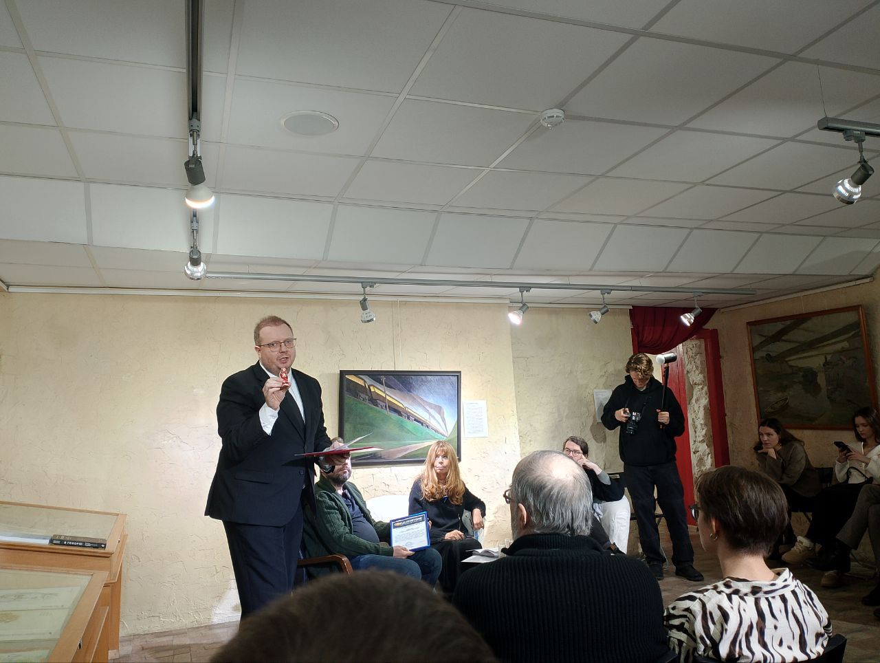 В частной художественной галерее Ильдара Галеева наградили победителей Премии Андрея Белого. Место не случайное: в рамках премии именно "Галеев-Галерея" стала номинантом в направлении "Гуманитарный проект". В этом году мероприятие прошло в закрытом камерном формате, сцена символически расположилась перед полотном Леонида Чупятова "Скоростной поезд": по высокой насыпи в светлую даль уходит пассажирский состав.