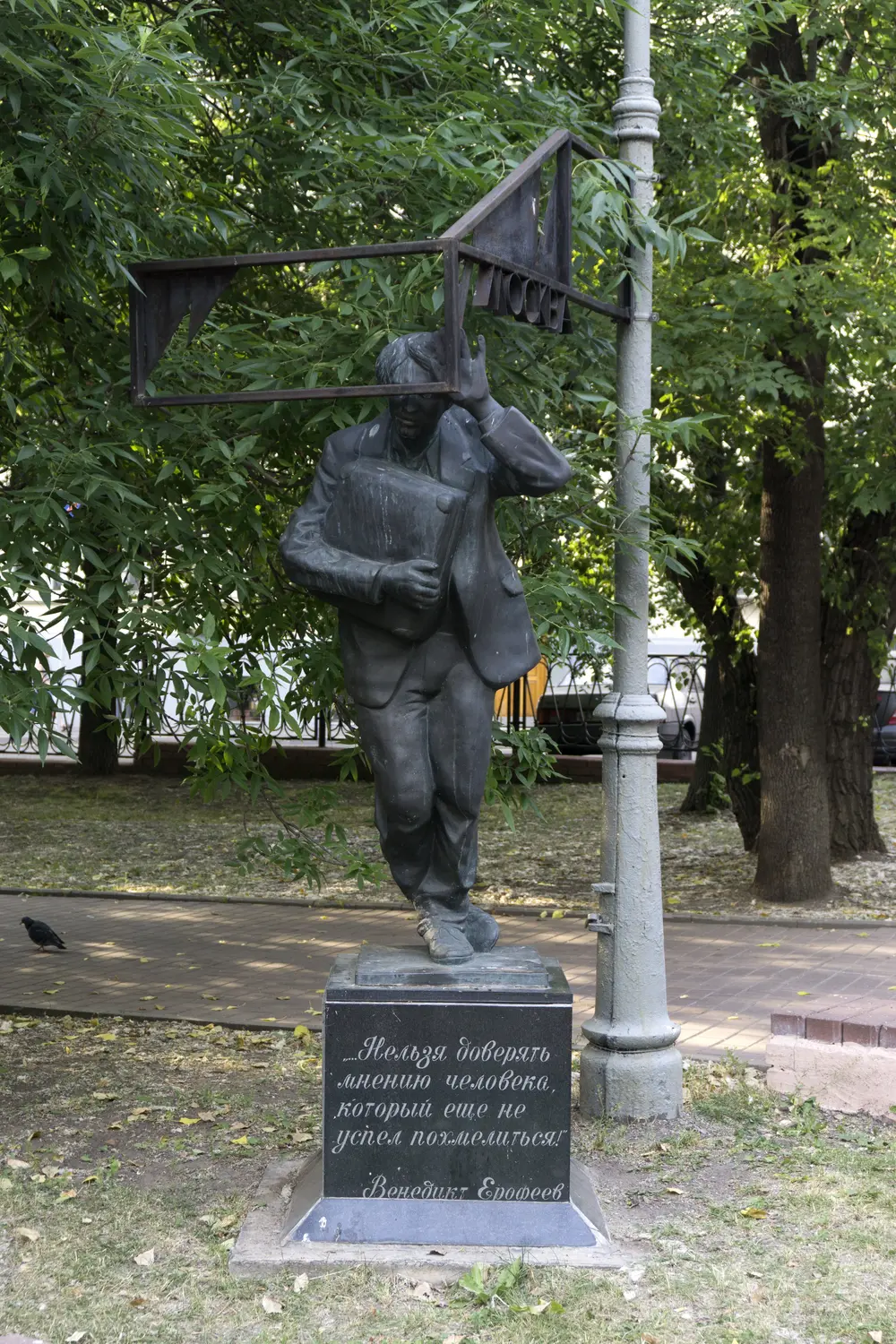 К слову, на памятнике героям «поэмы» «Москва — Петушки» в Москве высечена следующая, крайне актуальная на первое января фраза: «Нельзя доверять мнению человека, который ещё не успел похмелиться!».