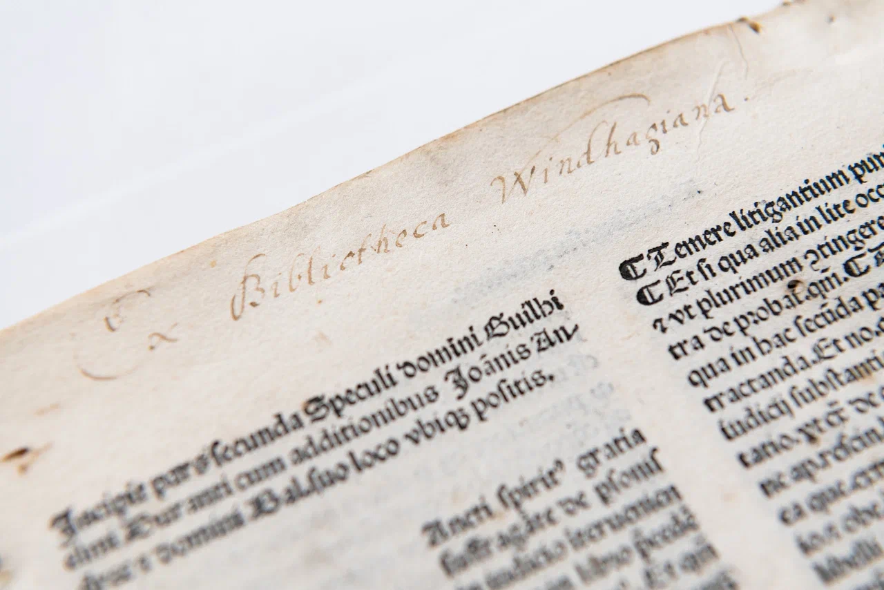 Пробегая глазами изумительные в своей строгой красоте латинские строчки, прикасаясь к напечатанным более половины тысячелетия назад страницам фолианта, просто невозможно не поддаться своему воображению: вот готический зал замка Виндхаг, где престарелый граф в своем кресле у камина, перелистывая те же самые страницы, размышляет над словами, которым суждено предопределить развитие юридической мысли на столетия вперед.
