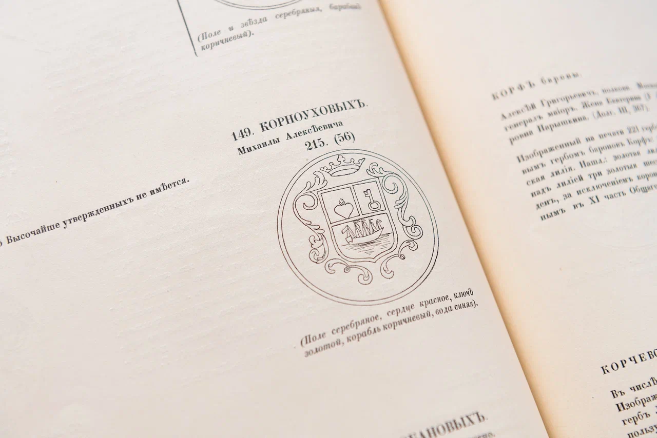Сергей Николаевич Тройницкий (1882–1948) – искусствовед и известный геральдист, один из основателей журнала «Старые годы», владелец типографии «Сириус»; сотрудник Эрмитажа, с 1918 по 1927 год – его директор. Именно С.Н. Тройницкий взял на себя работу по подготовке к изданию рукописи первого русского гербовника, созданного за тринадцать лет до издания «Общего гербовника дворянских родов Всероссийской империи». Изображения 527 гербов 377 родов были вручную срисованы А.Т. Князевым с печатей или их оттисков и преподнесены императрице в 1785 году. Однако лишь в 1912 году «Гербовник» увидел свет. Представив читателю фотокопии титульного листа, предисловия-посвящения, оглавления и одной страницы текста самого «Гербовника», Тройницкий дал затем прорисовки гербов, изображенных в «Гербовнике», снабдив их комментариями в виде биографических справок о владельцах, а также воспроизвел рисунки гербов этих родов, содержащиеся в «Общем гербовнике».