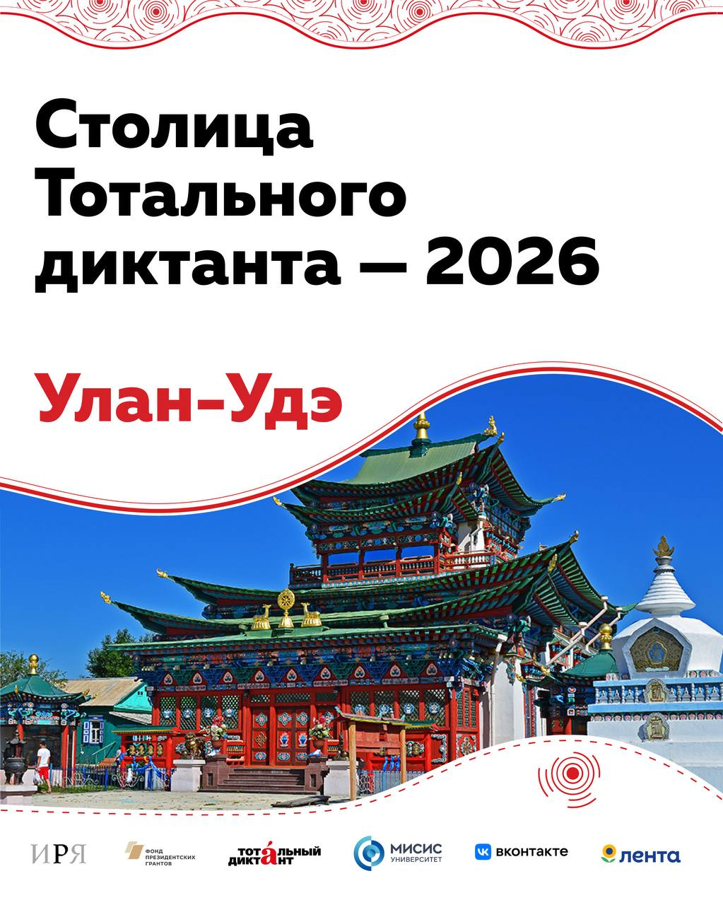 Столицей Тотального диктанта - 2026 по результатам экспертного голосования стал Улан-Удэ. За звание самого «грамотного» города в финале боролись Псков, Обнинск и Чита. Финал состоялся в рамках традиционной научно-практической конференции «Динамические процессы в современном русском языке», которая завершилась в Москве. Об этом сообщается в телеграм-канале Тотального диктанта.