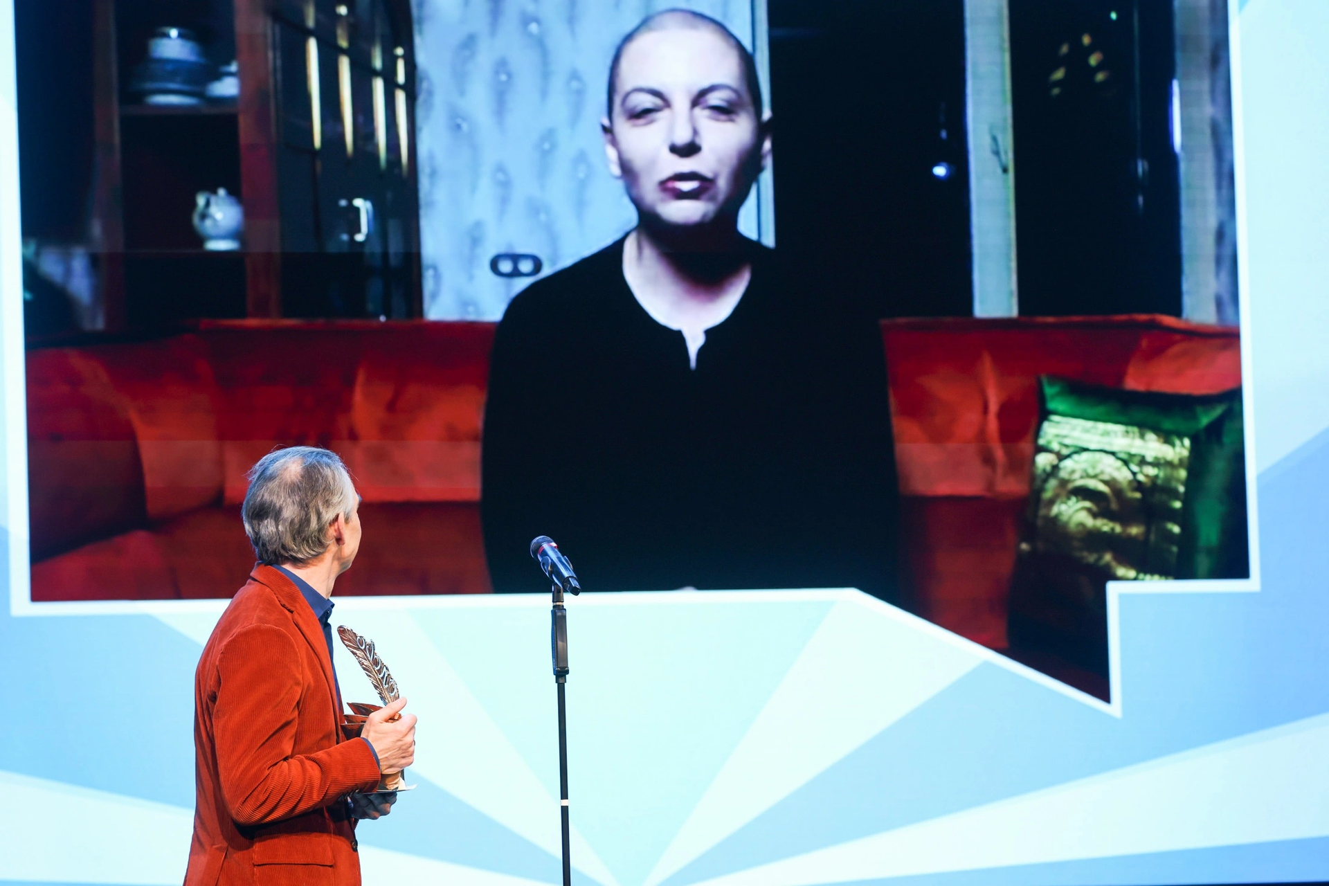 Но самой удачной частью церемонии стал видеомост с Маргаритой Симоньян, получившей спецпремию жюри за роман "В начале было Слово — в конце будет Цифра". Переживающая трудное время после онкологической операции, она обратилась к присутствующим в зале с проникновенными словами о ценности христианской веры в вечную жизнь, а показанный затем ролик с ее недавно ушедшим в эту жизнь мужем, режиссером и журналистом Тиграном Кеосаяном под звучание песни "Эхо любви" ("Покроется небо пылинками звезд...") на стихи Роберта Рождественского ненадолго вывело гостей в какое-то иное пространство, где было очень грустно, но почему-то удивительно хорошо.