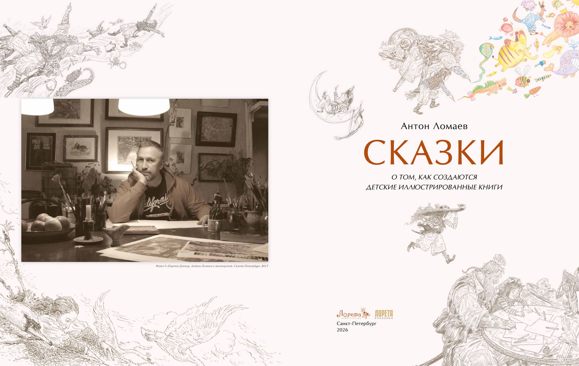 Свой "симметричный" день рождения он отметил выпуском в собственном издательстве замечательного арт-бука, в котором на примере работы над сказками Ханса Кристиана Андерсена, Шарля Перро, братьев Гримм, Вильгельма Гауфа и Эрнста Теодора Амадея Гофмана — рассказывает о том, как создаются иллюстрированные детские книги, от первого наброска жо законченной работы.