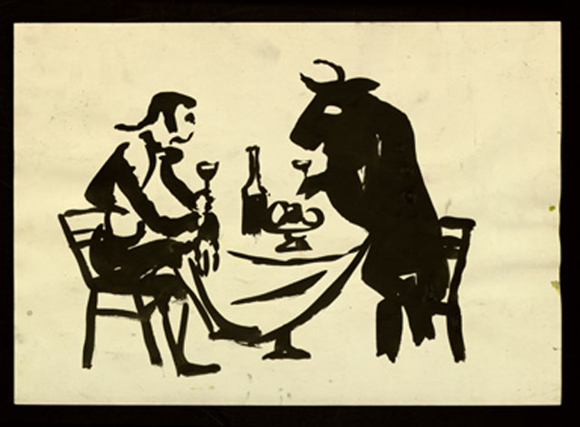 «На прошлой неделе я ужинал с отъявленным разбойником, а сегодня отведаю мороженого с самим дьяволом...» Кажется, Галина Ваншенкина одним глазом смотрела в «Кармен» Мериме, рисуя черной тушью тореро за одним столом с... иссиня-черным быком. Вот здесь и вправду трудно поверить, что черно-белую серию «Перед корридой», создавал – да, в диалоге с Пикассо – пятнадцатилетний подросток.