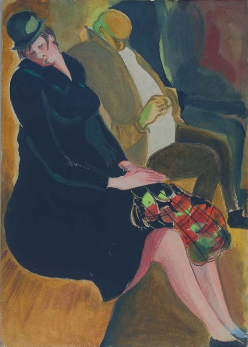 И кажется, что в выставленных нескольких десятках работ на выставке прослеживается освоение художницей, по мере ее взросления, разных художественных направлений. «В метро» – спящая женщина, увиденная юной художницей в метро, напоминает о Модильяни. Подсмотренные на даче Лиза и Клава с охапками сена в руках: девочка явно листала альбом Гогена. «В парке» – видится пробой в духе «голубого периода» Пикассо...