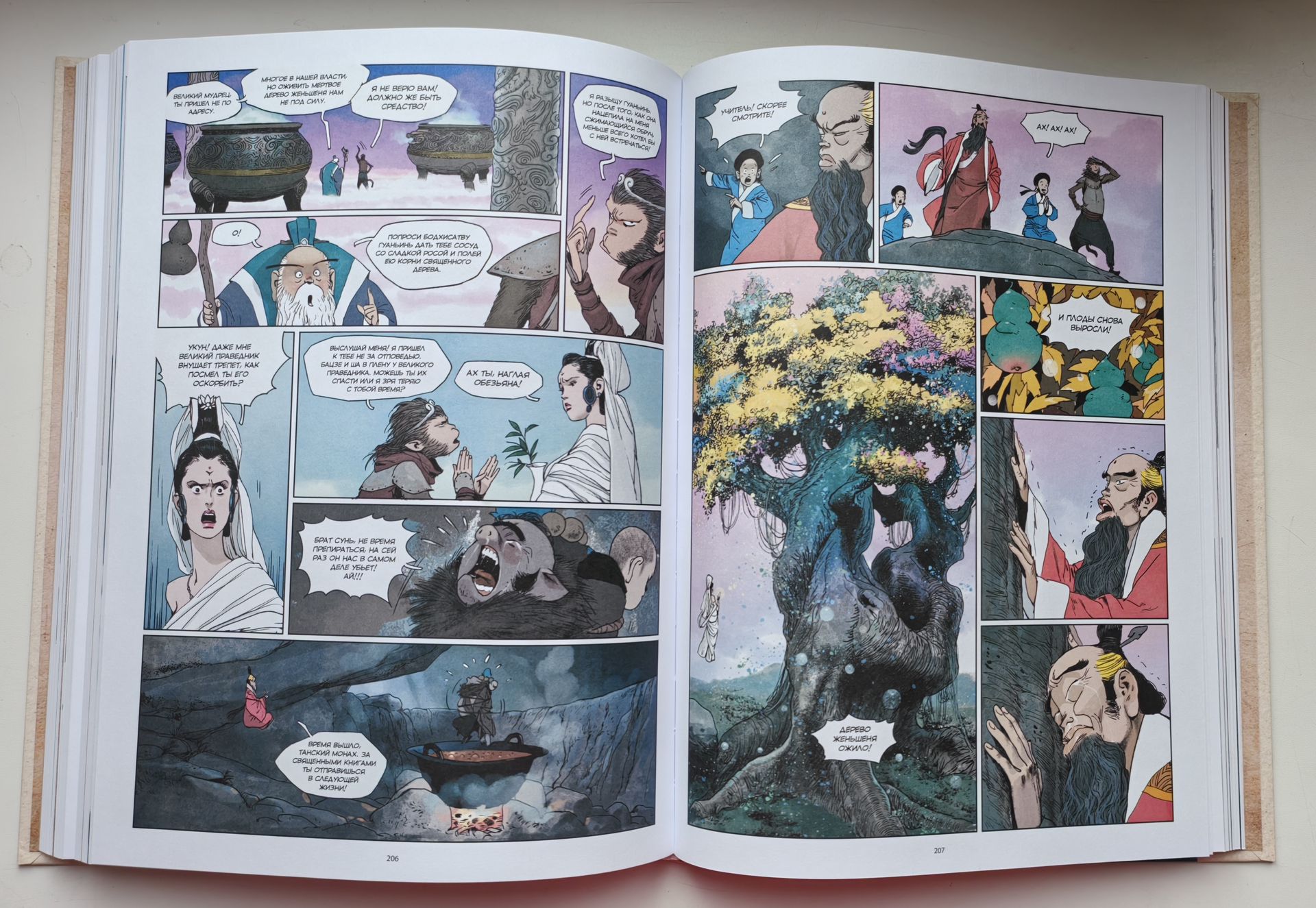 Итак, это версия все-таки китайская, но приспособленная для западного читателя и зрителя. Что хорошо чувствуется. И, в общем, ничего дурного нет в том, что восклики «амитафо!» и явление бодхисатвы богини Гуанинь сопровождаются вполне европеизированной рисовкой и диалогами - хорошо, кстати, переданными в переводе (только почему-то с французского) по-русски, что, увы в переводе комиксов не всегда случается. В общем, издательство «Питер», имеющее разный опыт издания комиксов, с этим opus magnum можно поздравить.
