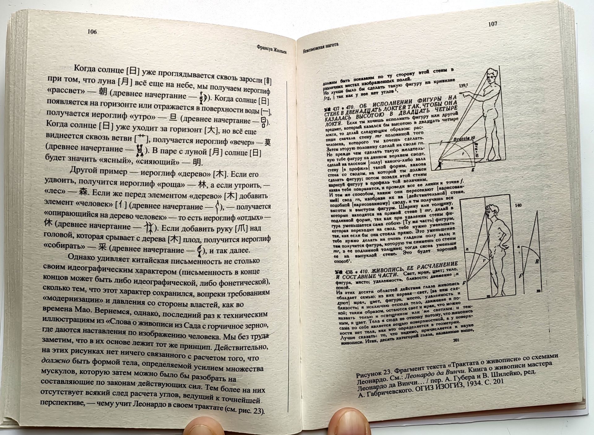 Между тем, начинает доктор Жульен, в Китае «нагота не рассматривается как возможная область искусства, и результат его взаимодействия с телесным. Чтобы в современном китайском языке сказать “порнографическое”, все ещё говорят просто “нагое тело”». Это обескураживающее нас утверждение приводится с соответствующей картинкой, вынуждающей продавать тонкую ученую книжку в целлофановой плёнке. Но, право же поучительна и интересна она совсем не этим.