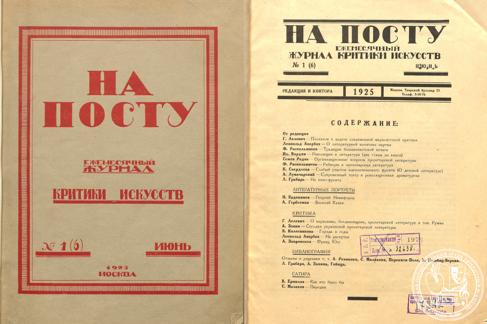 В апреле 1926 года в Москве вышел первый номер нового двухнедельного журнала «На литературном посту», который должен был стать критико-теоретическим органом Российской ассоциации пролетарских писателей (РАПП). Редакция формировалась под знаком примирения идейной бескомпромиссности с партийной дисциплиной. В нее вошли Леопольд Авербах, Юрий Либединский, Борис Волин, Федор Раскольников и маститый революционер Михаил Ольминский. Участие последних, людей с дореволюционным партийным стажем, должно было гарантировать, что новый журнал не свернет на тропу фракционной войны, как это случилось с его предшественником.