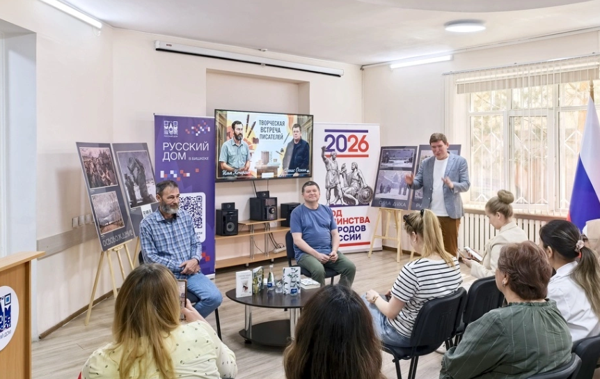 Еще одной остановкой писателей стал Кыргызско-Российский Славянский университет имени Б.Н. Ельцина. Здесь под руководством Виталия Панкова, заведующего кафедрой международной журналистики, прошел круглый стол "Новая литература". Говорили о разном, но вновь и вновь возвращались к тому, что писатель без поддержки - как корабль без паруса. Особенно тронул рассказ Ильи Одегова о "мушкетерском" чате - сообществе начинающих авторов, созданном в юности. Название родилось из любви к роману Дюма, а сам чат стал надежным плечом для тех, кто только делал первые шаги в литературе.